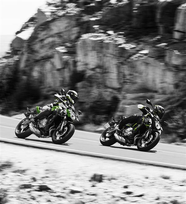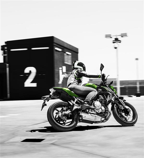 Il manubrio largo e la posizione di guida sportiva ma rilassata permettono al pilota di godere a pieno del potenziale della Z650.
