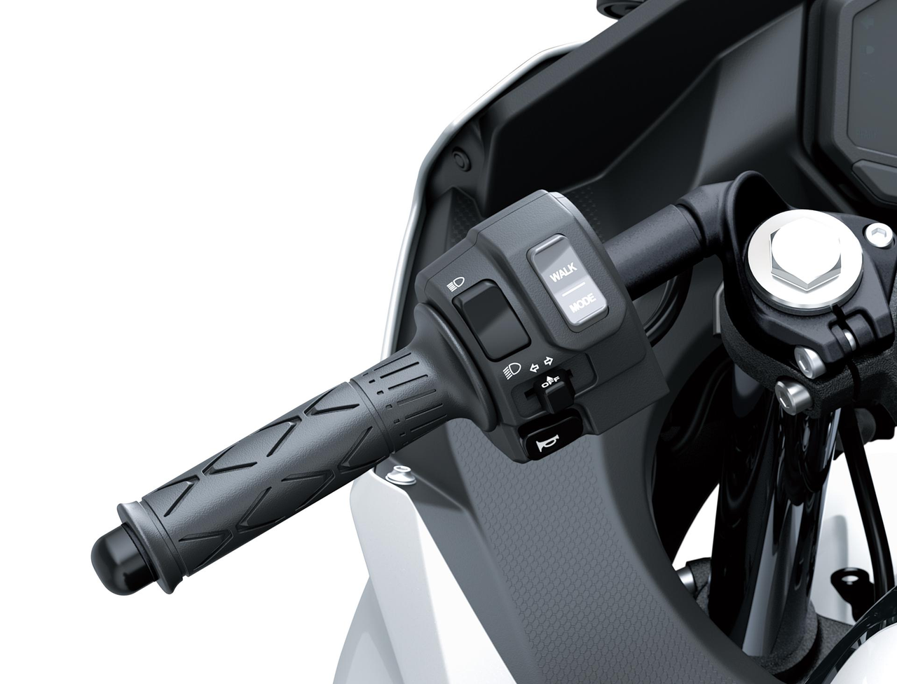 La modalità WALK assiste il pilota nelle manovre a bassa velocità, ad esempio in un parcheggio. Quando è attivata, aprendo l’acceleratore la moto si muove in avanti alla velocità di camminata, mentre chiudendo l’acceleratore oltre il punto di “zero” la moto si muove in retromarcia.