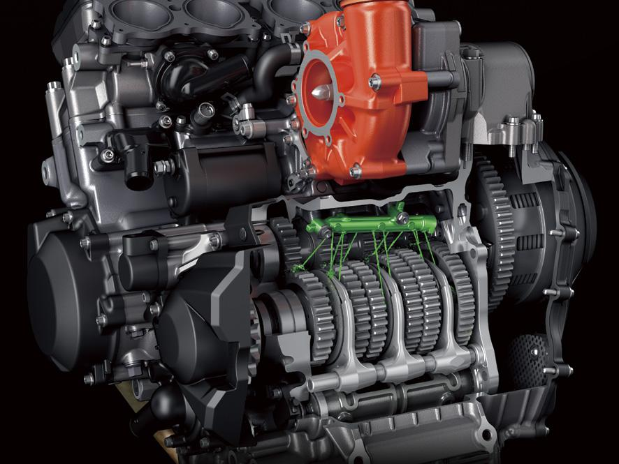 Il sistema Kawasaki Engine Brake Control consente ai piloti di selezionare il livello di frenata del motore che preferiscono; quando il sistema è attivato, l'effetto frenante del motore viene ridotto, garantendo minori interferenze durante la guida in pista.