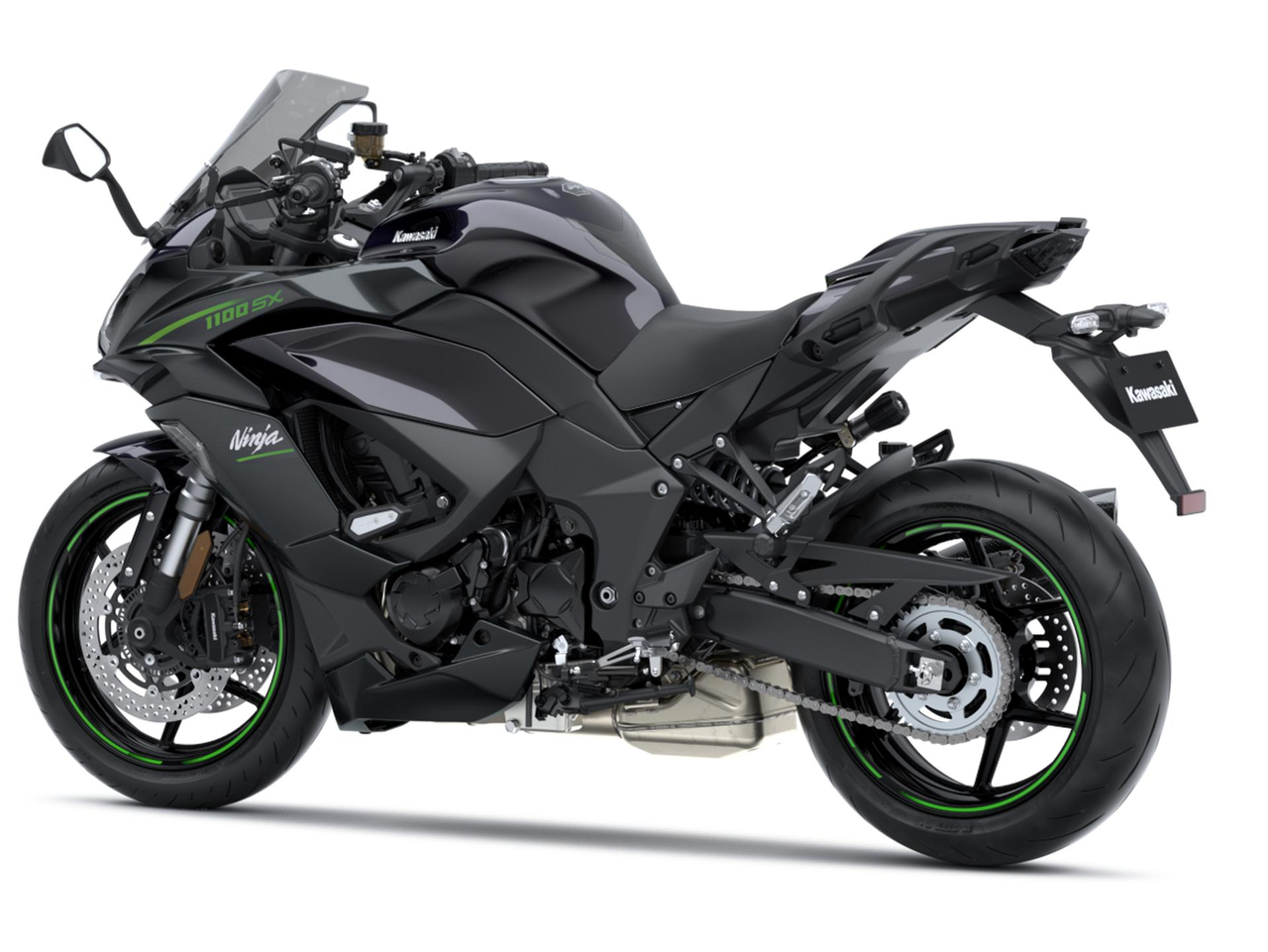 La Ninja 1100SX spinge il divertimento della guida sportiva a un livello superiore, grazie a un aumento della cilindrata e a un KQS migliorato. La maneggevolezza sportiva, i componenti del telaio in stile supersportivo e lo stile dinamico della Ninja sono stati mantenuti dalla versione precedente, con il pacchetto motore-telaio superbamente bilanciato che contribuisce all'emozione della guida su strada in un'ampia gamma di situazioni.