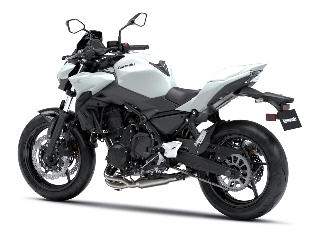 Il peso complessivo contenuto della Z650 è merito del telaio a traliccio leggero, progettato con un baricentro basso per garantire maneggevolezza agile e facilità di controllo anche alle basse velocità. La struttura compatta del telaio contribuisce a un peso a secco stimato di soli 173 kg