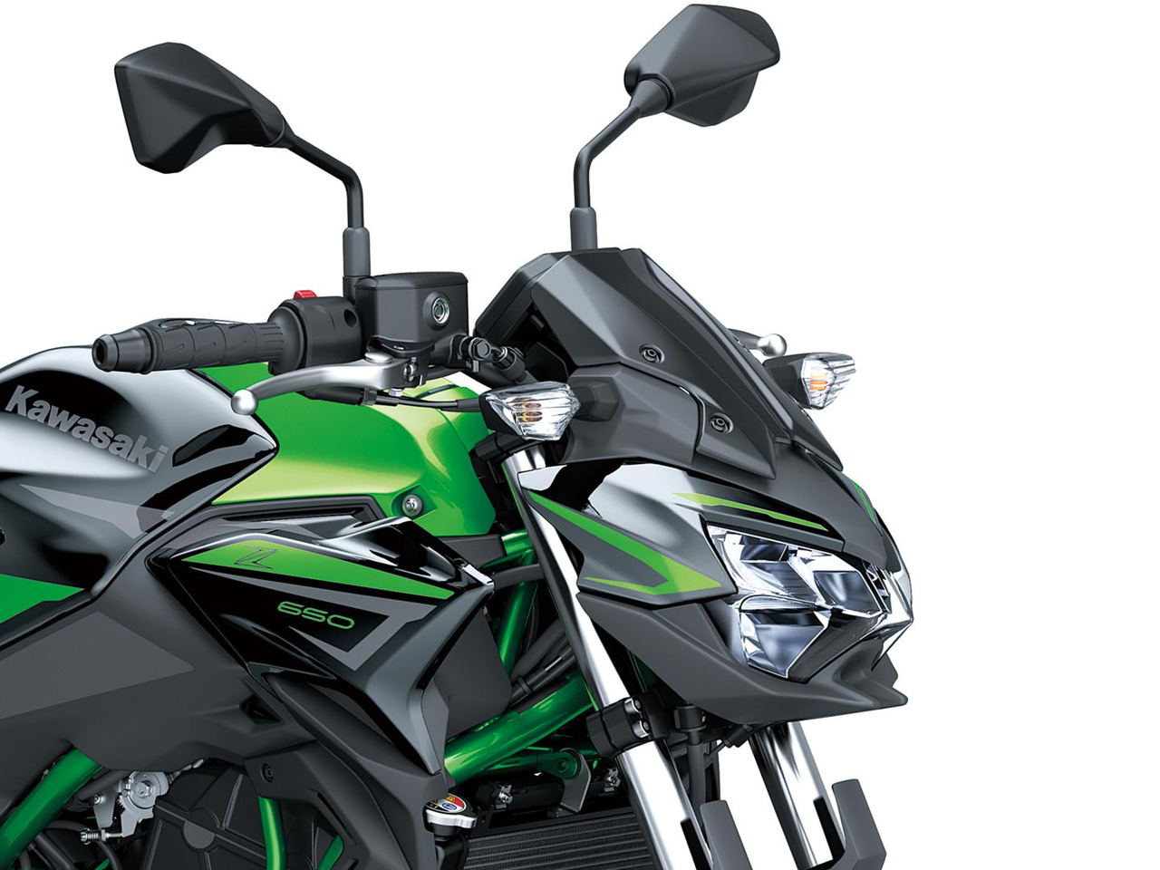 The overall light weight of the Z650 motorcycle is attributed to its lightweight trellis frame, which features a low center of gravity for nimble handling and confident low-speed maneuvering. The compact trellis frame contributes to an estimated dry weight of 173 kg.