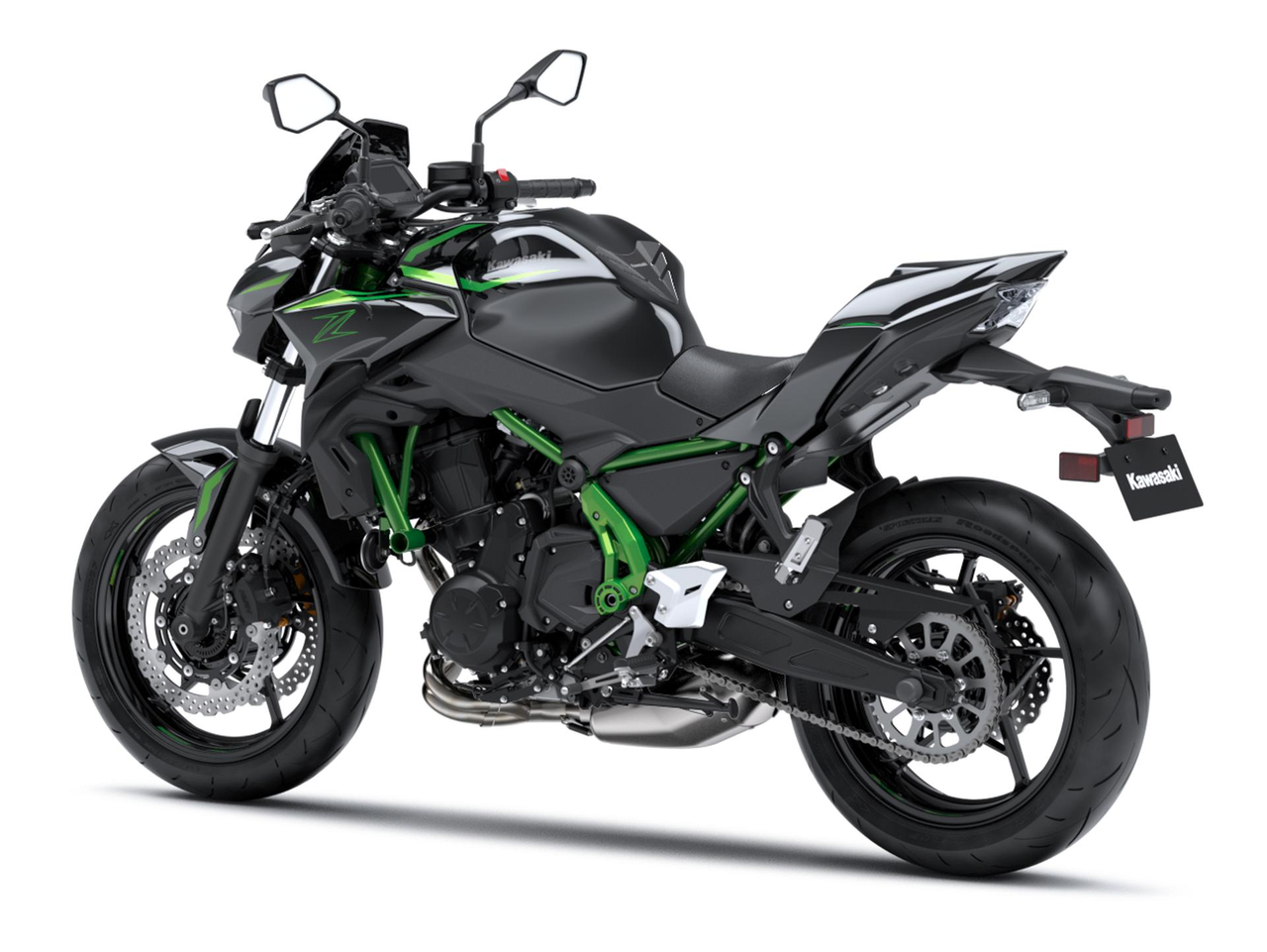 The overall light weight of the Z650 motorcycle is attributed to its lightweight trellis frame, which features a low center of gravity for nimble handling and confident low-speed maneuvering. The compact trellis frame contributes to an estimated dry weight of 173 kg.