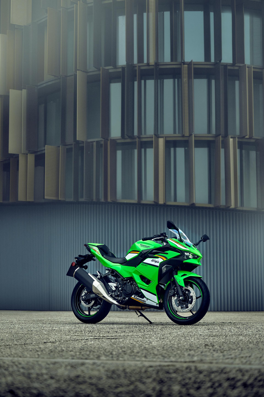 "Fate la vostra dichiarazione con la nuovissima Ninja 500, una moto in grado di far girare la testa a tutti, grazie allo stile aggressivo tipico delle Ninja. Il nuovo motore bicilindrico da 451cc raffreddato a liquido saprà sorprendervi, la ciclistica raffinata emozionarvi. Sali in sella al mito Ninja!"