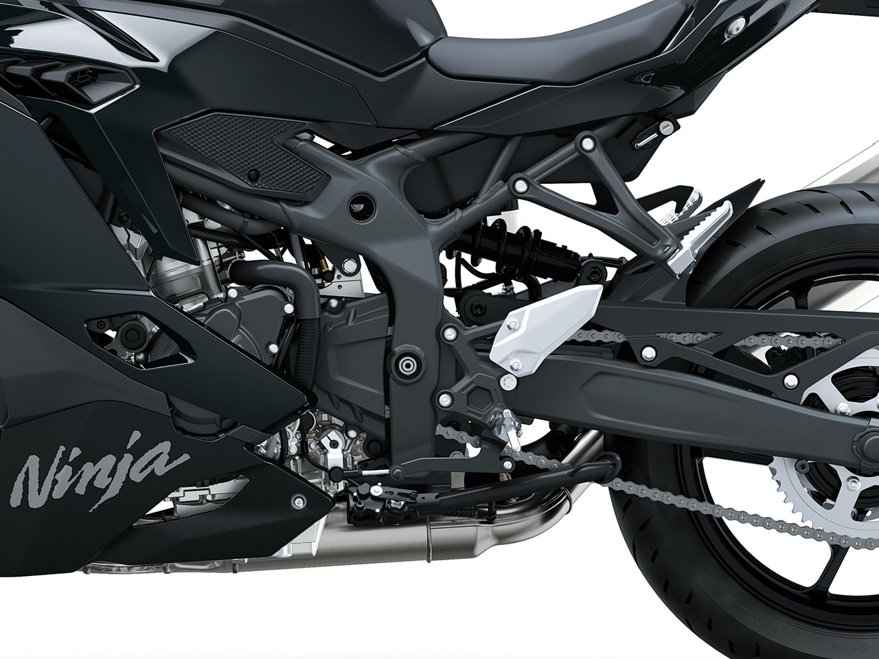 Rispetto alla tradizionale sospensione Kawasaki Uni-Trak con monoammortizzatore in posizione verticale, la Horizontal Back-Link ha un mono quasi orizzontale. Questa soluzione originale Kawasaki posiziona il monoammortizzatore molto vicino al baricentro della moto, contribuendo alla centralizzazione delle masse. Non essendoci poi leveraggi o unità ammortizzante che sporge dal forcellone, si libera più spazio per scarico e pre-silenziatori. Con l'uso di un pre-silenziatore si possono ridurre le dimensioni dello silenziatore, contribuendo alla centralizzazione delle masse e migliorando sensibilmente la maneggevolezza .Altro beneficio consiste nell'allontanamento del monoammortizzatore dal calore dello scarico; poiché è più difficile per il calore proveniente dallo scarico influire su pressione di olio e gas dell'ammortizzatore le prestazioni dell'unità restano più costanti. La sospensione Horizontal Back-link offre diversi benefici secondari del genere.
