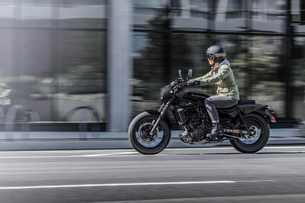 Una reinterpretazione moderna del classico stile lungo e basso dell’Eliminator originale si unisce a una versatilità capace di adattarsi a qualsiasi stile di vita. Le linee orizzontali che guidano lo sguardo dalla parte anteriore a quella posteriore, la sella ribassata e il manubrio basso e piatto evocano il potenziale per una guida attiva e una maneggevolezza agile, dando l’impressione che il nuovo Eliminator possa scivolare con naturalezza sul terreno.