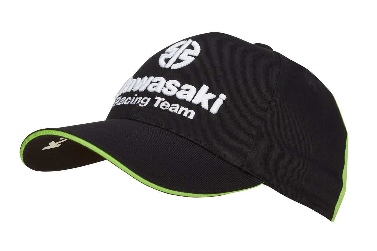 Cappellino MXGP 2022 con visiera. Strap regolabile, loghi Kawasaki Racing Team, saia, 100% Cotone