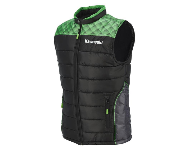Combatti il freddo in qualsiasi momento dell'anno. Questo nuovo gilet sports 100% poliestere con logo Kawasaki è uno dei capi più versatili da tenere nel tuo armadio. Offre infinite combinazioni mantenendoti sempre al caldo con stile. Garantito.