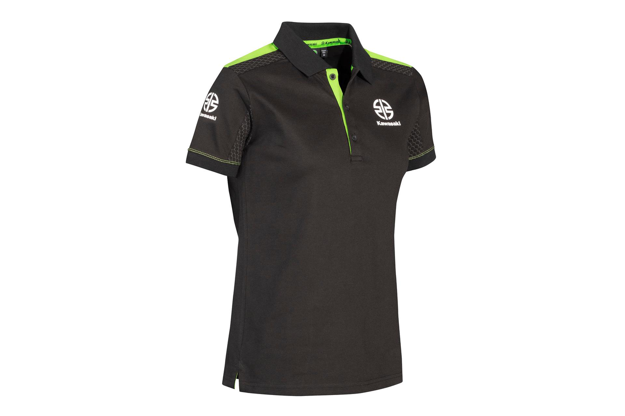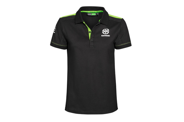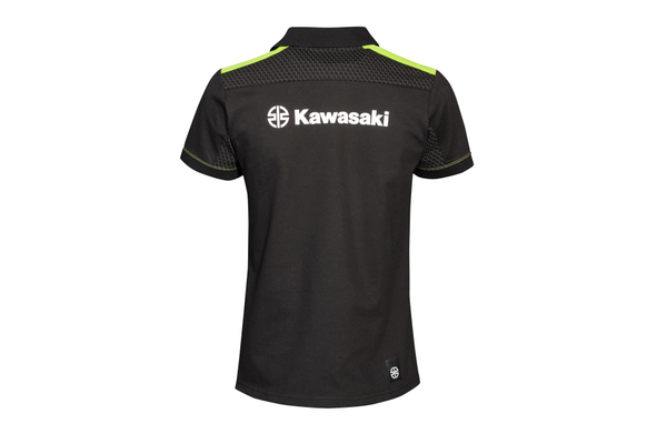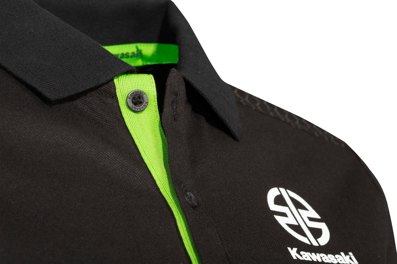 Polo Kawasaki a maniche corte con apertura a bottoni e maniche con risvolto. Apertura con bottoni Stampa esagonale grigia sulle spalle Inserti laterali verdi a contrasto Tessuto pique 95% cotone 5% elastan