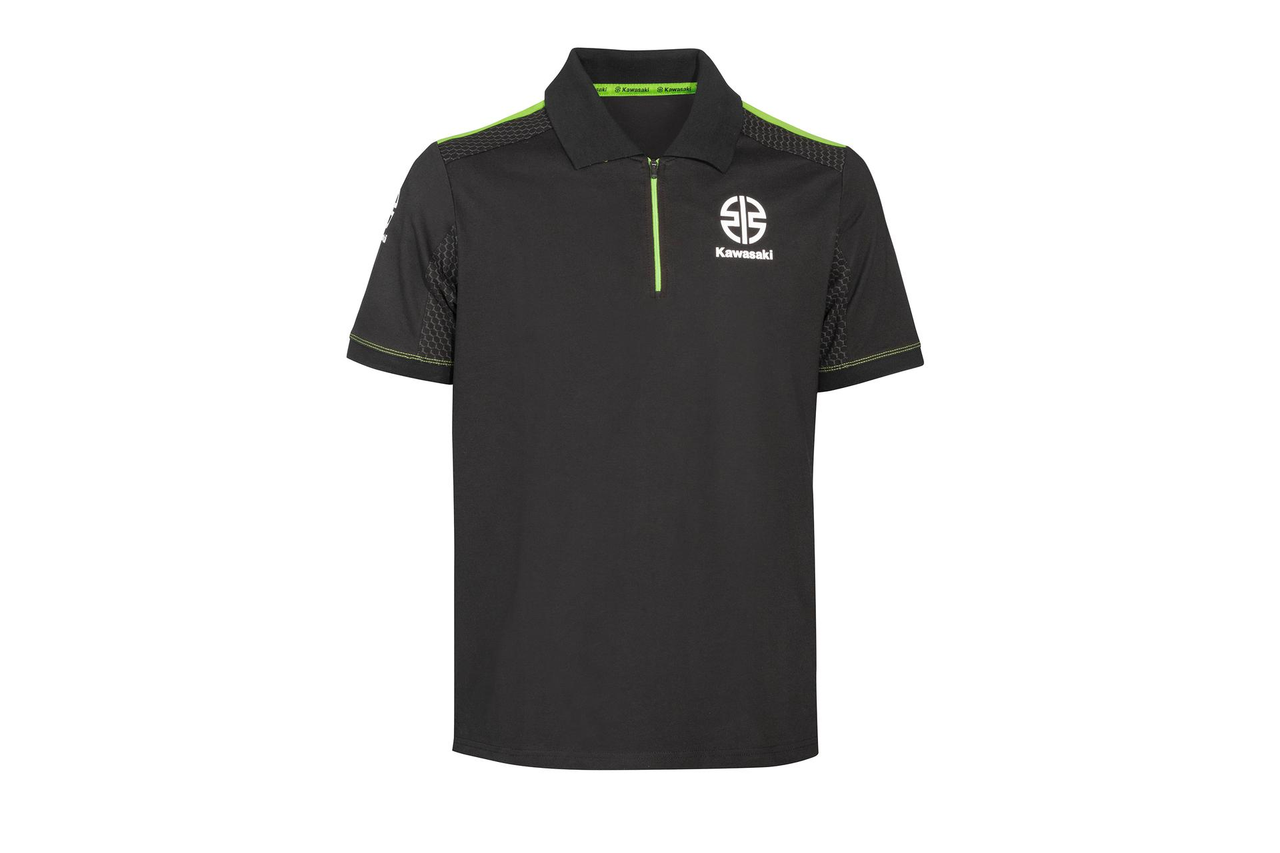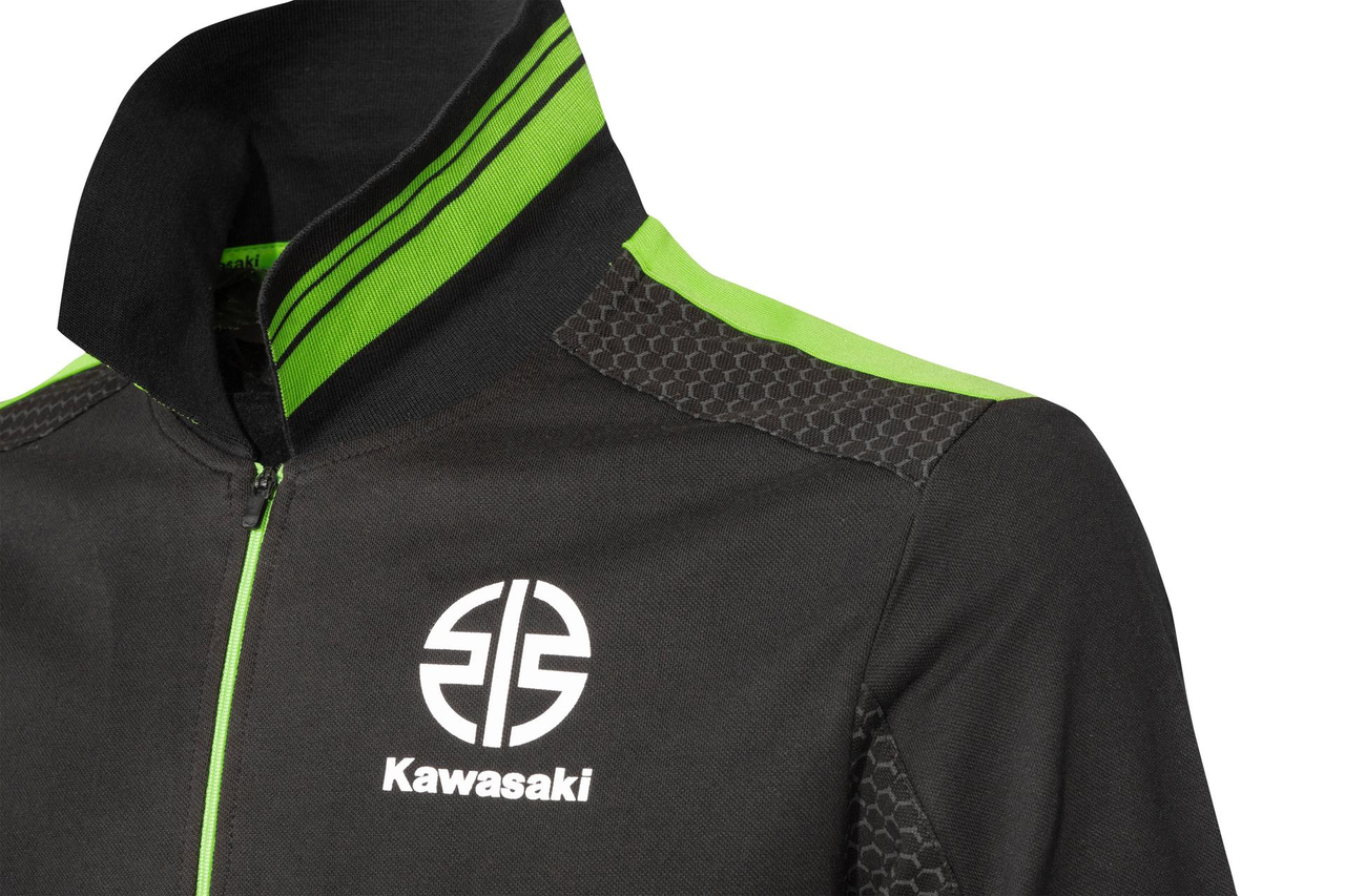 Polo a maniche corte con originale apertura tramite zip e maniche con risvolto. Apertura con zip Stampa esagonale grigia sulle spalle Inserti laterali verdi a contrasto Tessuto pique 95% cotone 5% elastan
