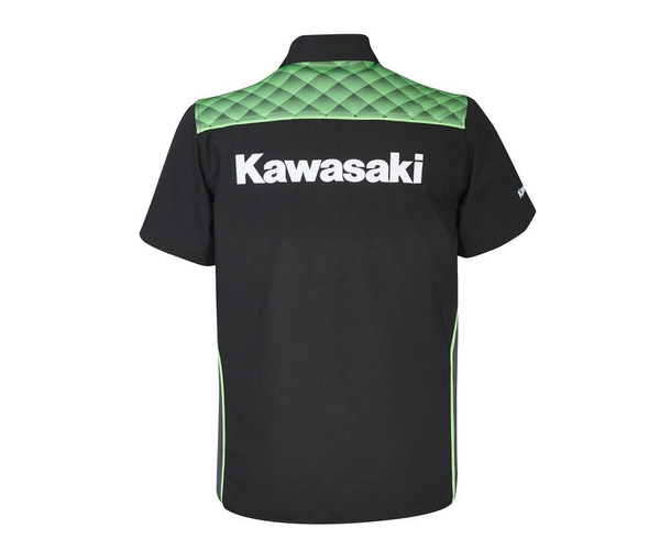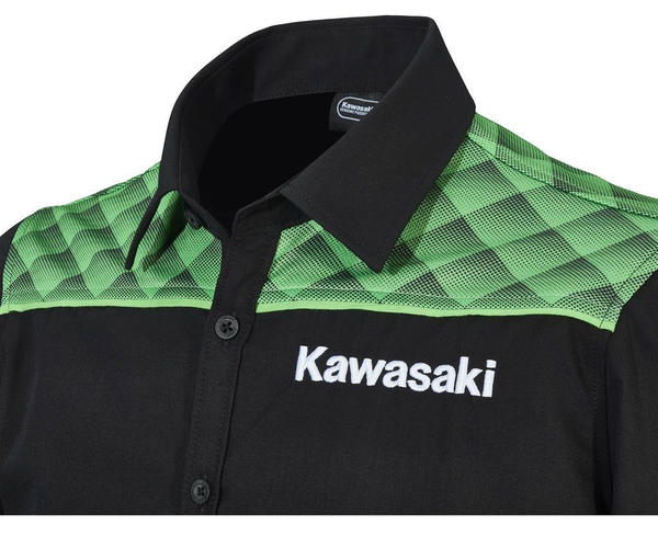 Questa elegante camicia unisex con loghi Kawasaki ricamati, area delle spalle stampata con motivo a sublimazione ed inserti verdi che scendono su entrambi i lati, ti farà sentire parte del team Kawasaki in ogni occasione. E' il capo ideale per affrontare le calde giornate estive che tutti amiamo.