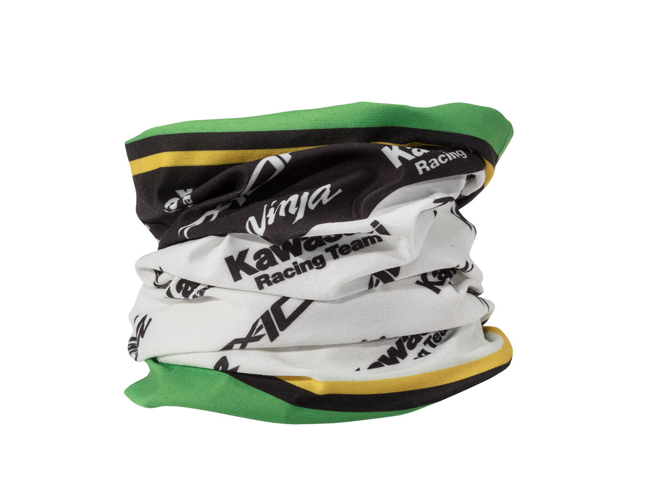 Necktube Kawasaki con i colori ufficiali del team e loghi racing KRT. Strato singolo Loghi racing Kawasaki Stampa a sublimazione 100% Poliestere