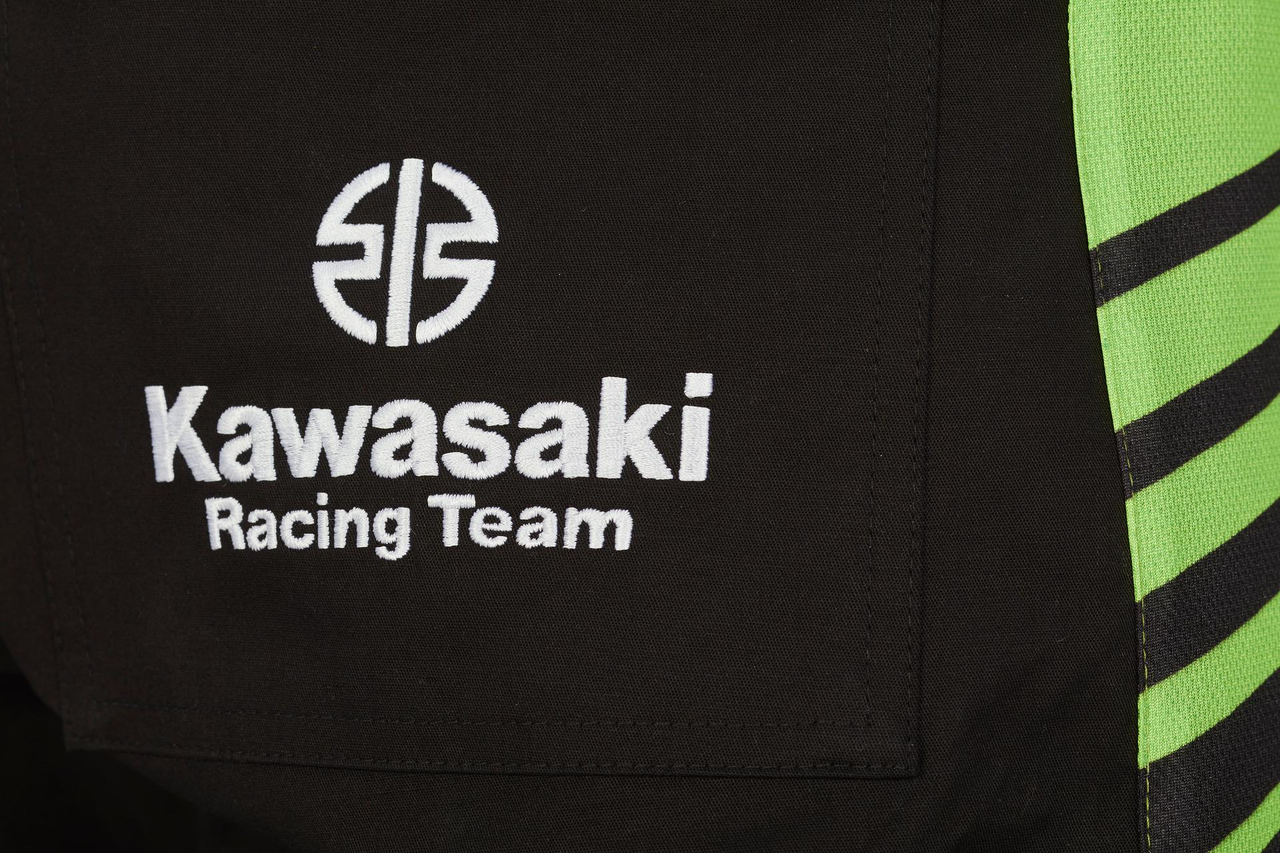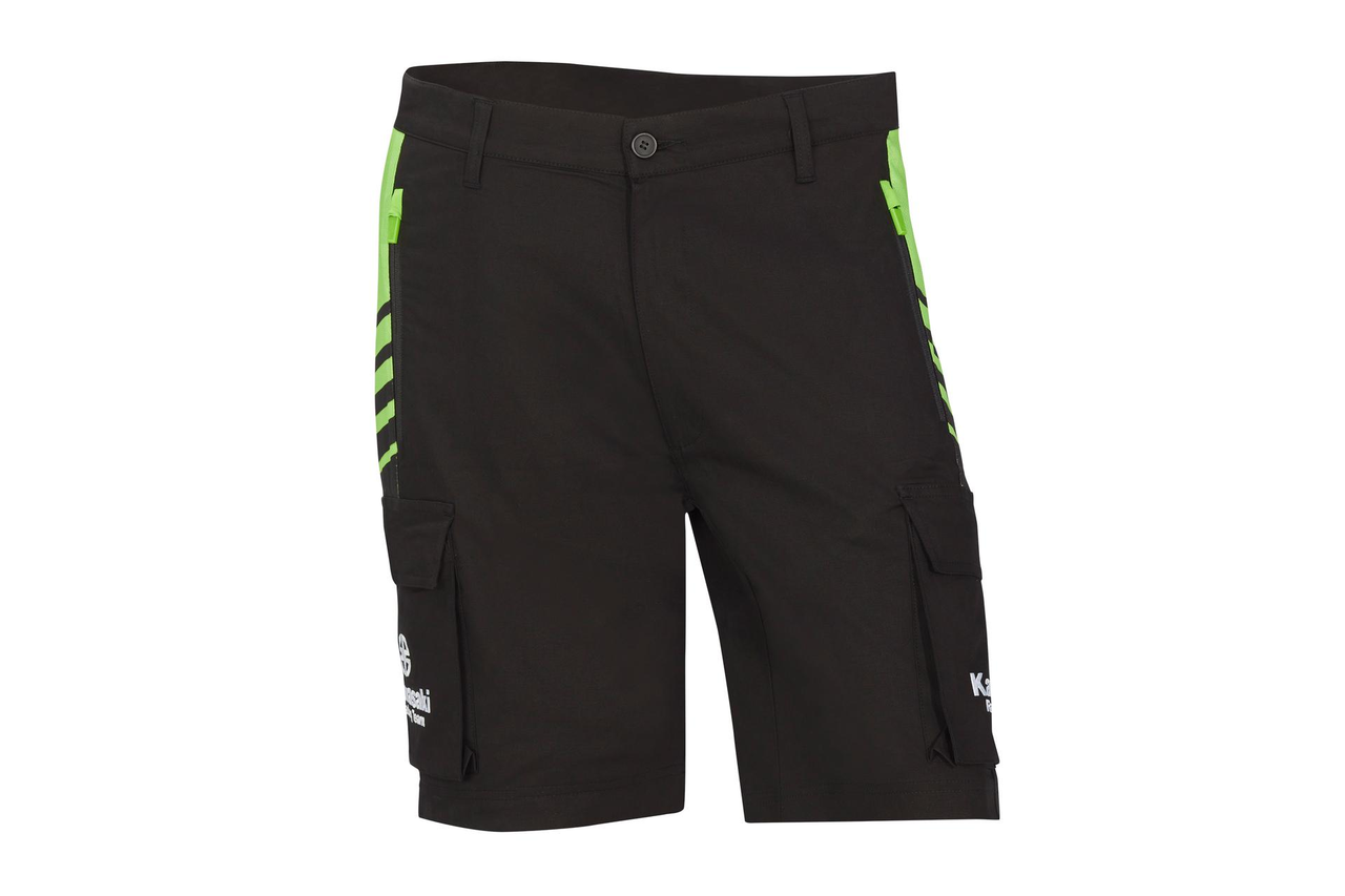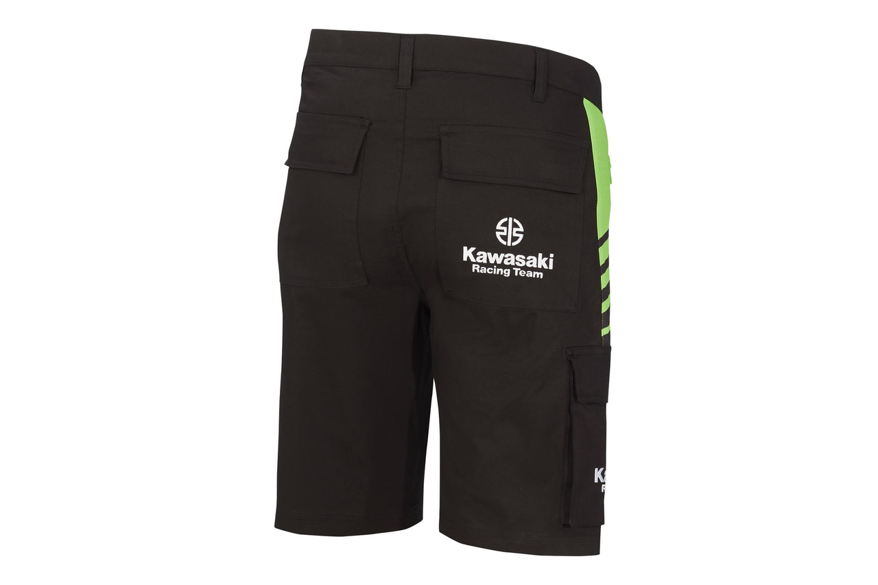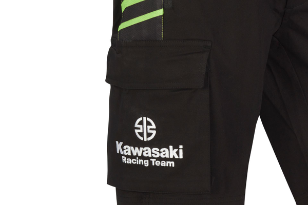 Bermuda WSBK Cargo Style con tasche laterali. Tasche anteriori con zip. Tasche laterali Cargo. Tasche posteriori con flaps. Logo Kawasaki Racing Team. Tessuto di peso medio. 97% cotone 3% elastan.