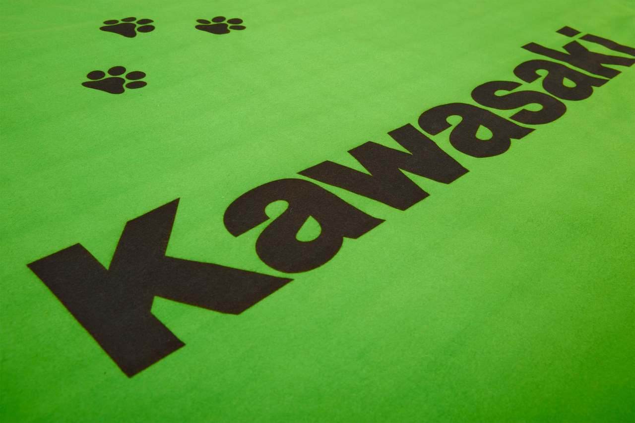 Copertina Kawasaki dedicata al tuo amico a quattro zampe. Imbottita Dimensioni: 120 cm x 100 cm Logo Kawasaki nero 100% Microfibra