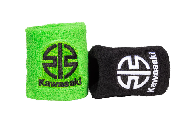 Set polsini verdi e neri con il logo Kawasaki Rivermark. 95% cotone e 5% elastan.