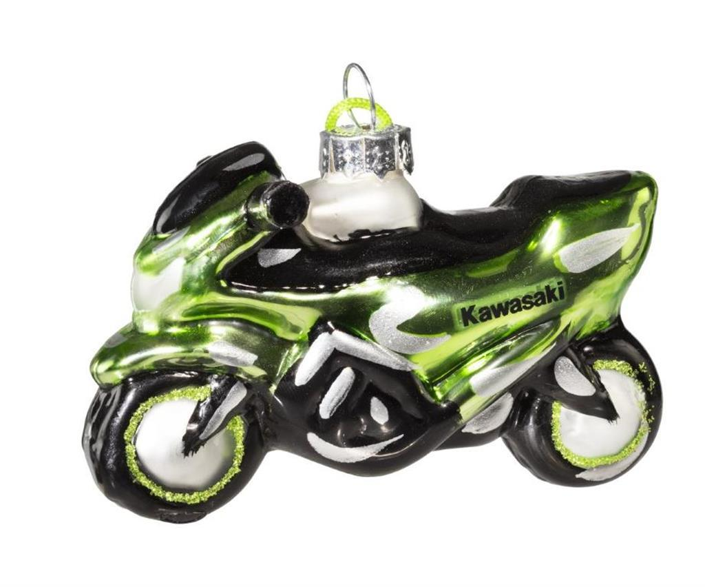 Originale ed esclusiva decorazione in vetro "handmade" per il tuo albero di Natale, che ricorda le famose moto Kawasaki.