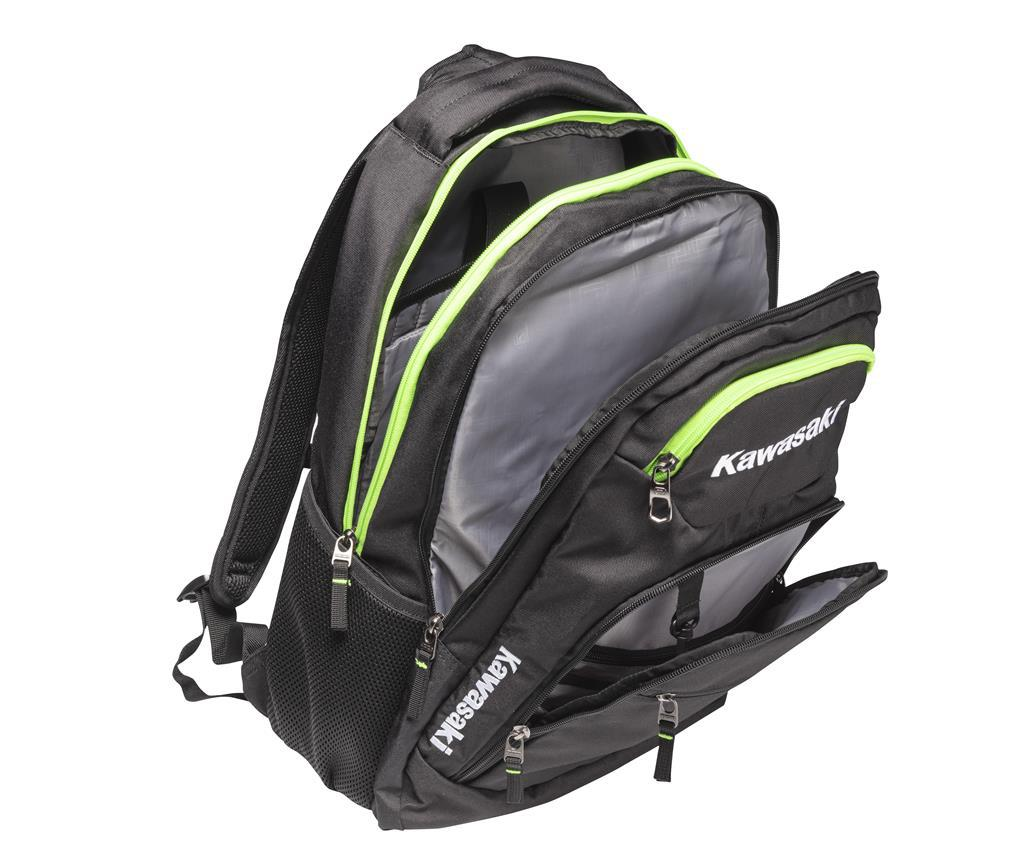 Ecco il nuovo zaino Kawasaki by Ogio perfetto per l'utilizzo quotidiano ! Grazie alla sua generosa capacità di 40 litri può contenere agevolmente computer portatili fino a 17 pollici. Schienale ventilato per un maggior confort, spallacci imbottiti e pratica cinghia pettorale.