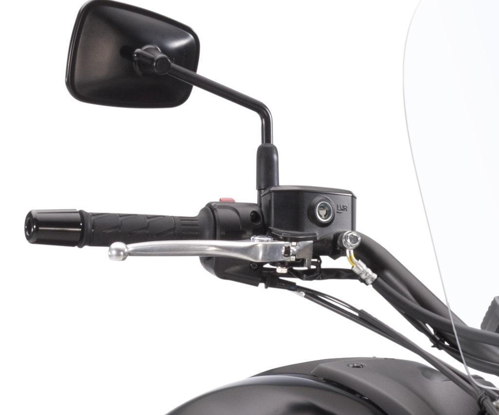 Manubrio nero fatbar-style con le estremità posizionate verso l'interno per avvicinare le manopole al pilota di circa 36mm. Sono incluse le fascette ed i bulloni necessari per il montaggio.