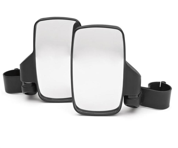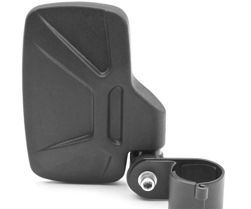 Lo specchietto verticale in vetro di sicurezza infrangibile è inserito in un alloggiamento in plastica resistente agli urti. La superficie convessa dello specchio aumenta il campo visivo del conducente. La rotazione adattativa a 360° della staffa offre una posizione di visione ottimale. Gli specchi si fissano direttamente alla struttura ROPS del veicolo. Venduto come set di 2. Non può essere abbinato alla cabina rigida